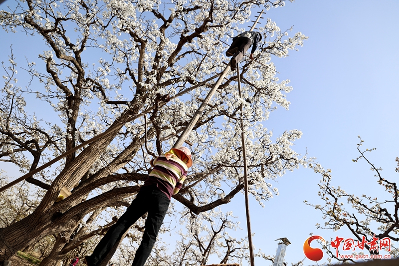 蘭州皋蘭什川鎮(zhèn):一部手機“云”游梨園 一根長竿“撣”出匠心