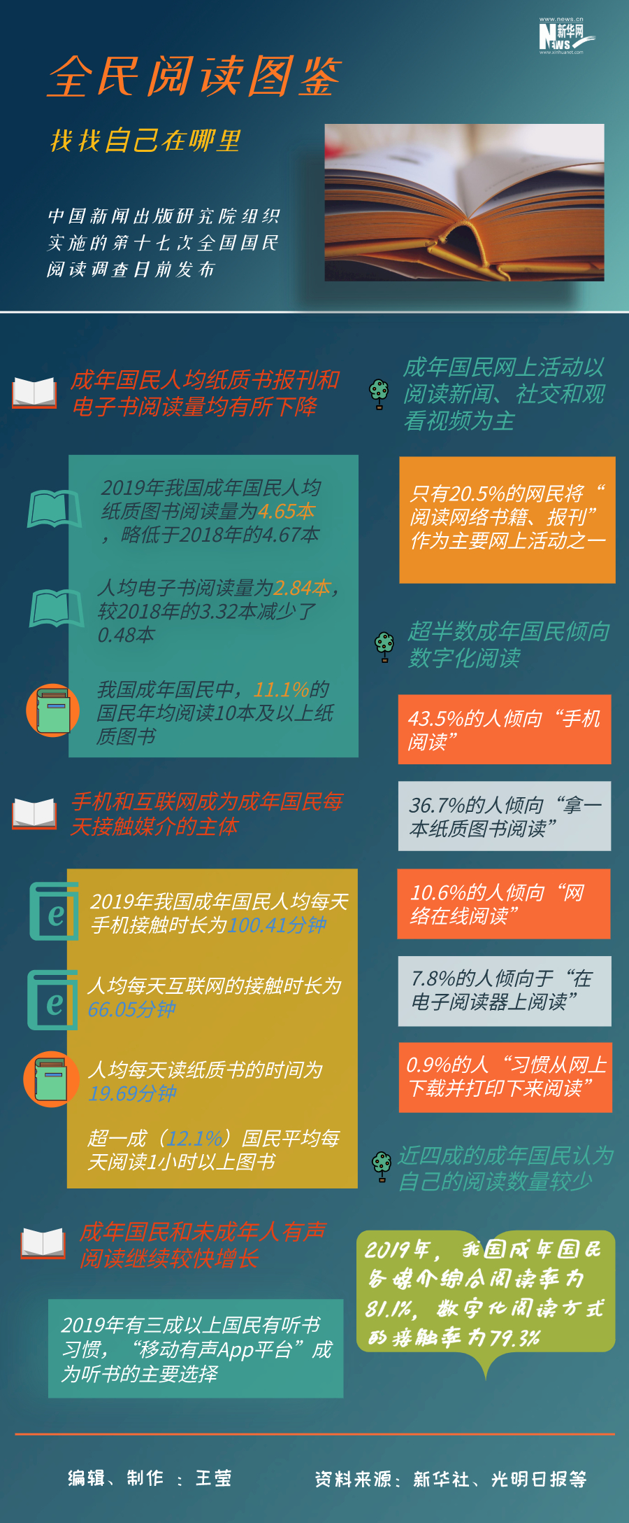 今天是世界讀書日,中國新聞出版研究院日前公布第十七次全國國民閱讀調(diào)查結(jié)果。國民人均一年讀幾本書?用在閱讀上的時(shí)間有多少?隨著移動互聯(lián)趨勢的發(fā)展,在閱讀方式和閱讀習(xí)慣上有哪些改變?跟隨這份全民閱讀圖鑒,找找自己在哪里。