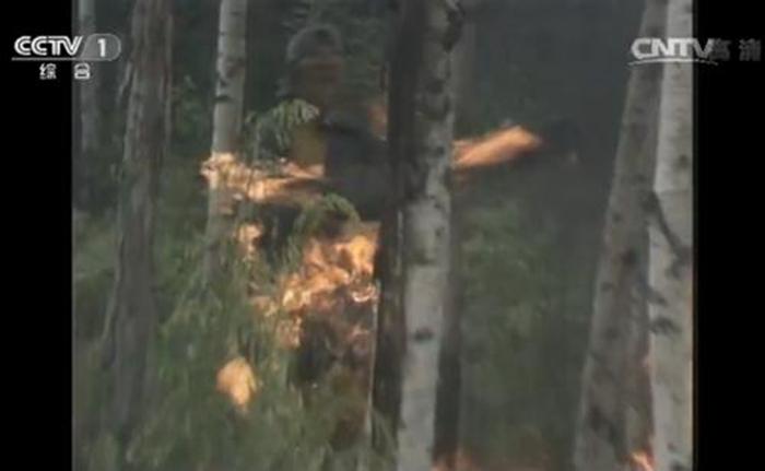 “大戰(zhàn)紅孩兒”中,紅孩兒放火燒孫悟空。這一幕也是很真實(shí)的拍攝。圖片來源:82版《西游記》視頻截圖