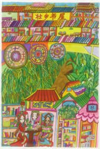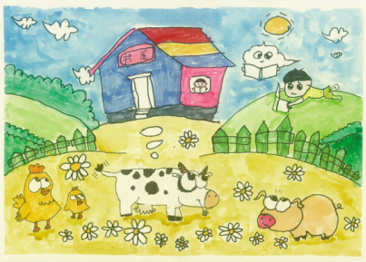 面對這部由中國少年兒童新聞出版總社出版的《“我的書屋·我的夢”——2019年農(nóng)村少年兒童閱讀實踐活動優(yōu)秀作品集》,讓人欣喜的是,它不但有文字,還有很多入選的畫作,孩子們運用了大膽的色彩、大膽的想象、大膽的線條,恣肆地描繪著他們的夢和憧憬,這些夢根植于他們生活的山鄉(xiāng)曠野,又呼應(yīng)著遠方、星辰與大海。我尤其記得其中的一幅,那是一座高聳的書塔,那種拔地而起、直上云霄的氣勢,是一種象征,是一種隱喻,是這一代孩子想站到巨人肩上的渴望,是他們對祖國明天最美好的祝福和期待,也是中華民族必將走向復(fù)興的昭示。
