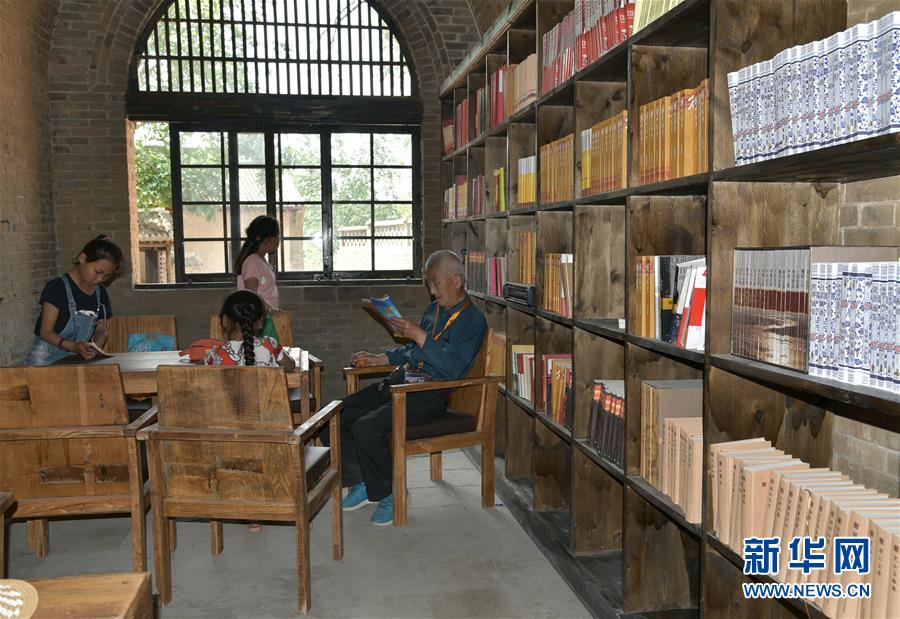 老苗書館就是在其中一處窯洞上修建而成。“這個(gè)院子共有8口窯洞組成,一百多年前由一戶苗姓人家修建,所以取名老苗書館。”51歲的苗樹生是書館的第一任館長,也是建設(shè)者之一。“我們是24小時(shí)開放,村民可以把書拿回家,還可以把家里的書拿來換著看,整個(gè)書館藏書5萬多冊(cè),很多都是黨員干部和志愿者捐來的。”苗樹生說。