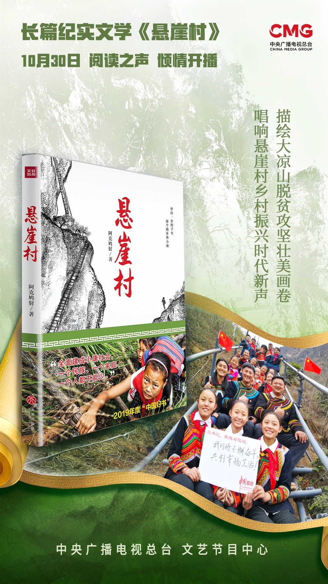 長篇紀(jì)實(shí)文學(xué)《懸崖村》于10月30日起在中央廣播電視總臺(tái)閱讀之聲開播,同時(shí)上線新媒體。