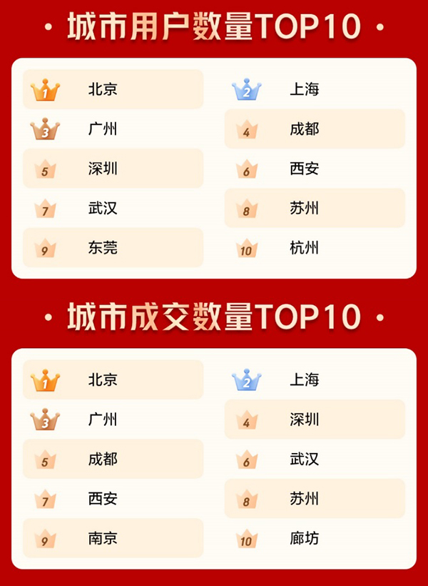 2020年哪些城市最愛買書?縱觀各地圖書成交額來看,北上廣深是一線城市,也是買書先鋒城市。京東數(shù)據(jù)顯示,北京、上海、廣州、深圳和成都五個城市在圖書用戶數(shù)量、成交數(shù)量和成交額上在2020年依舊保持名列前茅的佳績,北上廣居民在閱讀上始終保持最高的追求,成都則大有奮起直追的趨勢,不僅用戶數(shù)量上超越深圳位列第4,還在成交額和成交數(shù)量上牢牢占據(jù)第5的席位;歷史名城西安則展現(xiàn)出了自己作為千年古都的文化氛圍,在悠久歷史文化的熏陶下西安人民的買書熱情也相當火爆,在用戶數(shù)量、成交數(shù)量兩個榜單上分別位列第6、第7。