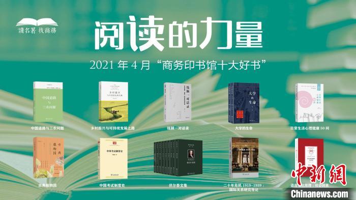中新網(wǎng)北京5月9日電 (記者 應(yīng)妮)商務(wù)印書(shū)館2021年第4期“月度新書(shū)發(fā)布會(huì)”8日晚在線上舉行。4月的“商務(wù)印書(shū)館十大好書(shū)”隨之出爐:《中國(guó)道路與三農(nóng)問(wèn)題》《鄉(xiāng)村振興與可持續(xù)發(fā)展之路》《錢(qián)穎一對(duì)話錄》《大學(xué)的生命》《日常生活心理健康50問(wèn)》《古典植物園》《中國(guó)考試制度史》《伏爾泰文集》(全十卷)和《二十年危機(jī)1919-1939:國(guó)際關(guān)系研究導(dǎo)論》、《語(yǔ)言變化原理:社會(huì)因素》十種好書(shū)入選。
