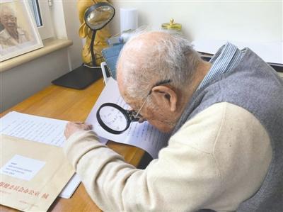 “我雖然歲數(shù)很大,身體不好,眼睛近瞎,但是我仍然堅(jiān)持在北大養(yǎng)成的習(xí)慣,學(xué)習(xí),學(xué)習(xí)再學(xué)習(xí),眼睛看不清楚,我用放大鏡也要讀書(shū)。”說(shuō)著,馬識(shí)途拿起了身邊的放大鏡示意。