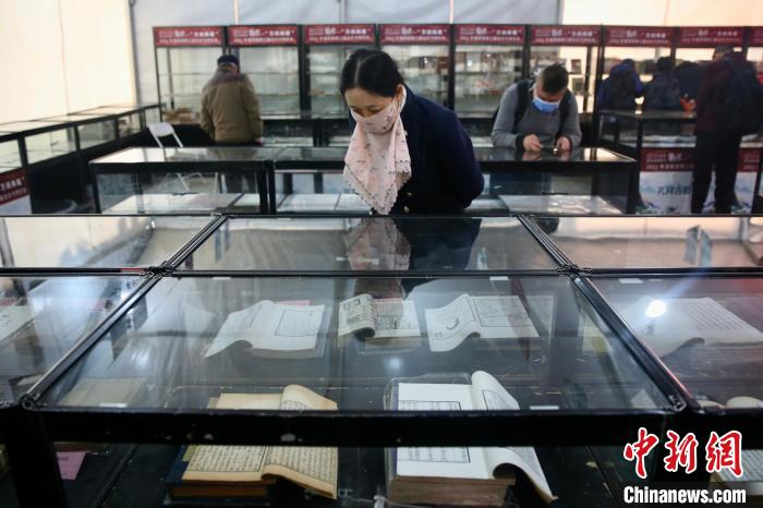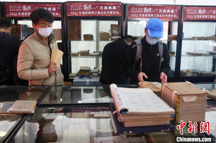 20日,“萬閱典藏”第三屆古舊書博覽會在北京潘家園舊貨市場開幕,圖為博覽會現(xiàn)場?!≈行律?nbsp;易海菲 攝