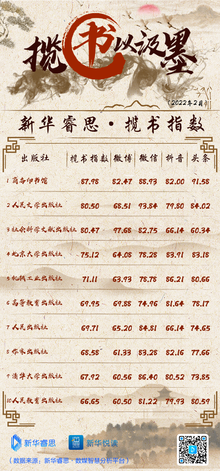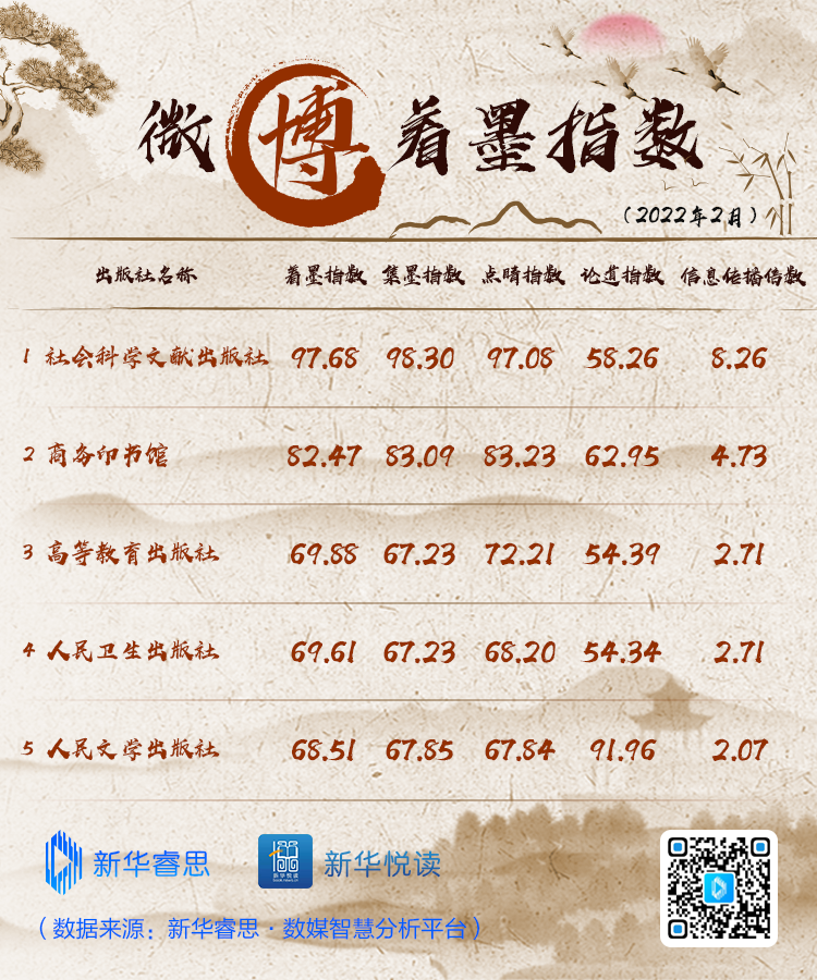 “新華睿思·出版社新媒體傳播影響力2月榜”出爐