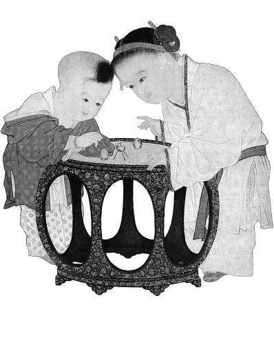 秉燭夜游是大人的游戲,那么古代的孩子玩什么呢?《陪孩子看中國畫》專門介紹了以兒童游戲?yàn)橹黝}的圖畫,其中《秋庭戲嬰圖》是宋代描寫童心的經(jīng)典畫作,刻畫了姐弟倆玩推棗磨的游戲。棗磨的制作原料非常簡單,由三顆鮮棗、三根短棍和一根長棍組成。這是古代北方秋天棗子成熟之后,孩子們經(jīng)常玩的一種自制玩具。孩子身后還有很多其他商業(yè)制作的玩具,但姐弟倆卻專注玩著自制的玩具。田玉彬感慨:“姐弟倆專注欣悅地玩推棗磨,而把一堆商品玩具丟在身后,這看似無意的對比想來是出于畫家的精心安排,他或許是想說童心并不在乎精巧華貴,而在乎清新純潔。”