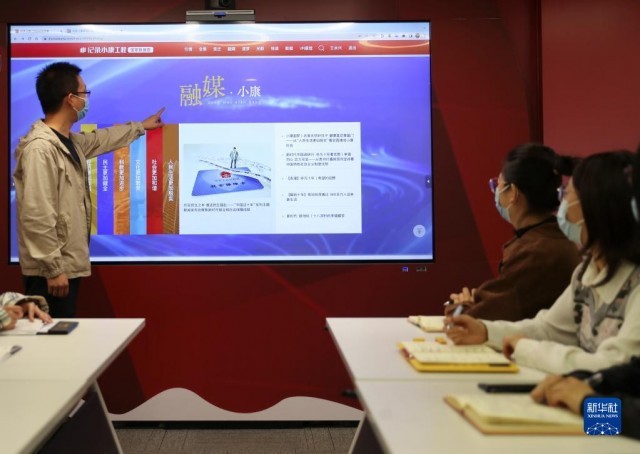 10月14日,“紀(jì)錄小康工程”數(shù)據(jù)庫工作人員在介紹“紀(jì)錄小康工程”數(shù)據(jù)庫。新華社記者 王楷焱 攝