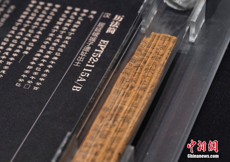 1月17日,“二十世紀(jì)初中國古文獻四大發(fā)現(xiàn)展”正在位于北京的國家典籍博物館內(nèi)展出。本次展覽分為“殷墟甲骨”“居延漢簡”“敦煌遺書”“明清檔案”四個專題,首次將分藏于各處的四大文獻薈萃一堂,集中多種類型的珍貴文物文獻共249種,382件,是目前為止“四大發(fā)現(xiàn)”文物最大規(guī)模的展覽。圖為“居延漢簡”展區(qū)中展示的一條“歷法簡”的真跡實物展品。 中新社記者 侯宇 攝