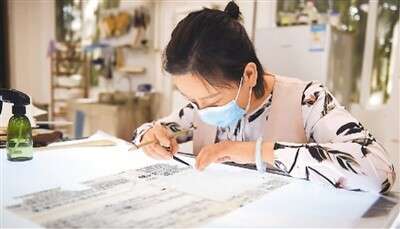 安徽博物院文物科技保護中心紙質(zhì)文物修復(fù)室的工作人員對古籍文物進行修復(fù)。新華社記者 周 牧攝