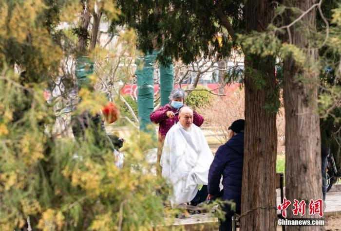 資料圖:北京市民在街頭休閑區(qū)理發(fā)。當(dāng)天是中國(guó)農(nóng)歷二月初二,民間有“二月二,剃龍頭”的傳統(tǒng)習(xí)俗,寓意辭舊迎新,帶來(lái)好兆頭。 中新社記者 侯宇 攝