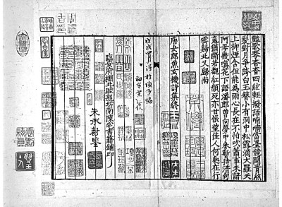 范景中先生曾見過謝蘭墀擺印本《唐宋文醇》,是書“正文用墨印,墨點用朱印,御評用黃印,朱子評用朱印,各家評用藍印,實為四色套印”。至于《唐宋詩醇》,范先生認為是木活字五色套印。其主要依據(jù)是《詩醇》凡例云:“評語悉準《唐宋文醇》之例,色別書之,但其中有援據(jù)正史雜說用資考訂疏解者,與古今人評詩之語義各有在,《文醇》未經(jīng)區(qū)別,今于藍筆之外,另作綠筆書,以便閱者,燦若列眉。”按照凡例的說法,《詩醇》在《文醇》朱、墨、黃、藍的基礎(chǔ)上又加了綠色,由此可知是五色套印本。實際上《唐宋詩醇》中并無康熙御評,因此未用黃色。湖南省圖書館藏有一部謝蘭墀擺印本《唐宋詩醇》,八冊,四十七卷全。我們委托張諾丕同學代檢全書,亦僅朱、墨、藍、綠四色而已,由此可知楊成凱先生所說四色套印本是正確的,而《增訂四庫簡明目錄標注》著錄的五色套印本恐不可信。