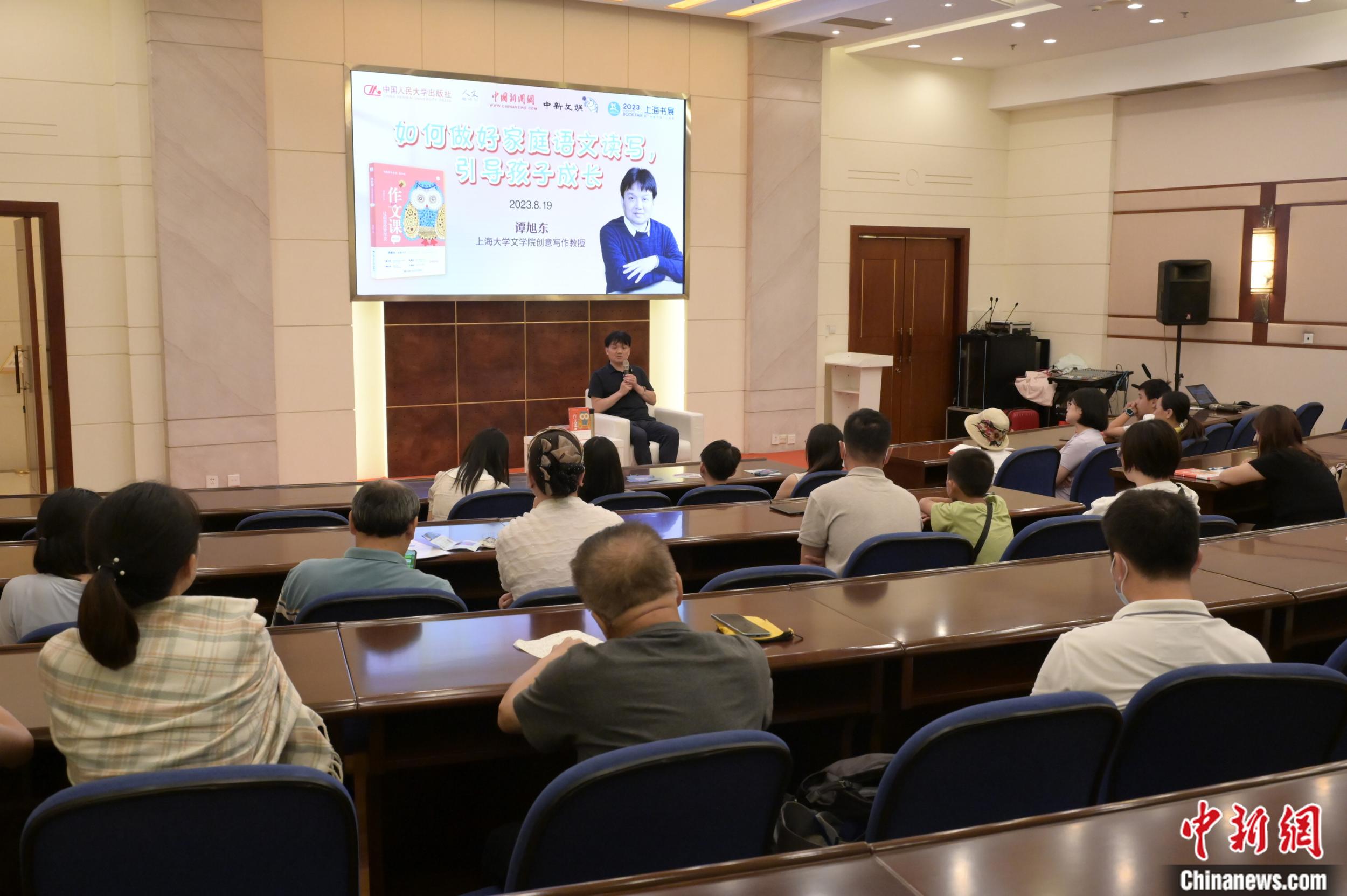 中新網(wǎng)8月22日電 8月19日晚,魯迅文學(xué)獎(jiǎng)得主、上海大學(xué)文學(xué)院教授、博士生導(dǎo)師譚旭東攜新作《作文課:讓創(chuàng)意改變作文》,走進(jìn)上海書(shū)展,暢談家庭語(yǔ)文教育。譚旭東以自己多年指導(dǎo)中小學(xué)語(yǔ)文教育的經(jīng)歷與大家分享:家庭語(yǔ)文讀寫(xiě)的培養(yǎng),對(duì)孩子的成長(zhǎng)和語(yǔ)文的進(jìn)步,都非常關(guān)鍵。