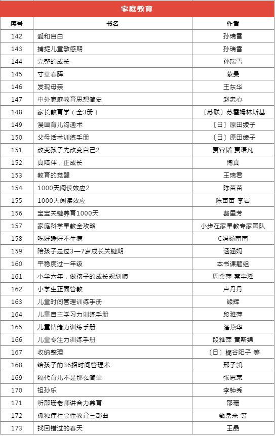 推薦書目種類繁多,分為前沿科技、基礎(chǔ)學(xué)科啟蒙、自然科學(xué)、家庭教育等十個(gè)類別,共計(jì)173本(套)。