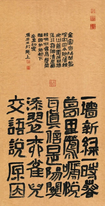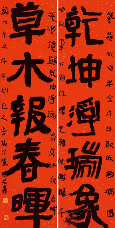 張平生是“詩(shī)人中的書(shū)法家,是書(shū)法家中的詩(shī)人”,是真正實(shí)現(xiàn)“我筆寫我文”的為數(shù)不多的“藝文兼?zhèn)?rdquo;型書(shū)法家。他的的書(shū)法,充分發(fā)揮“二爨”優(yōu)勢(shì),上溯漢碑簡(jiǎn)牘,把三者的風(fēng)格重新優(yōu)化組合,生發(fā)出新的系列,活化了“二爨”在當(dāng)代的創(chuàng)作形態(tài),獲得廣泛贊譽(yù)。