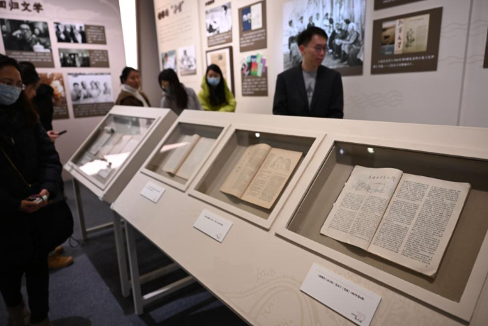 “近300張照片和550余件展品,全景記錄王蒙70年來與共和國發(fā)展歷史相伴、與祖國和人民同呼吸共命運(yùn)的文學(xué)創(chuàng)作歷程。”本次展覽策展人江琳介紹,展覽展示了王蒙先生跌宕起伏的人生經(jīng)歷和各時期的代表性優(yōu)秀文學(xué)作品,表現(xiàn)他為黨、為國家、為人民寫作的初心和使命。