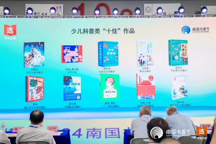 活動(dòng)現(xiàn)場,嘉賓依次揭曉五大類“十佳”作品入選名單。今年入選的50部作品,延續(xù)了往屆“十佳”作品品質(zhì)閱讀要求,緊貼時(shí)勢,包羅萬象,不乏“新質(zhì)生產(chǎn)力”等熱點(diǎn)話題。同時(shí),我們也很欣喜的看到,在兒童文學(xué)、少兒科普領(lǐng)域,涌現(xiàn)出不少新生代原創(chuàng)作者。