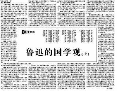 2007年5月31日《光明日?qǐng)?bào)》國學(xué)版文章《魯迅的國學(xué)觀(上)》