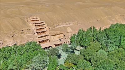 莫高窟坐落于河西走廊西部盡頭的甘肅敦煌,是世界文化遺產(chǎn),也是中華民族的文化藝術(shù)寶藏。圖為9月26日拍攝的莫高窟窟區(qū)。