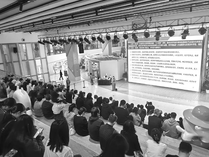 本次“進書城”活動的宣講員均為學習貫徹黨的二十屆三中全會精神深圳市委宣講團成員,是來自全市各有關高校馬克思主義學院的專家學者。宣講活動中,他們用通俗易懂、生動形象的語言,將全會精神深入淺出地展現(xiàn)在市民讀者面前。