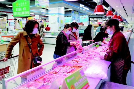 清晨,當陽光灑向大地,南山市場早已門庭若市,鮮嫩的蔬菜水果、帶著春天氣息的野菜、剛出鍋的包子油條……所有攤位上都擺放得滿滿當當,攤主的叫賣聲此起彼伏,絡(luò)繹不絕的市民戴著口罩前來買菜,但防疫工作卻沒有絲毫松懈,在菜場的出入口,有專人實時監(jiān)測入場人員體溫,并要求所有人戴好口罩。超市里,各類商品琳瑯滿目,供應(yīng)充足,測完體溫、掃碼進入的市民戴著口罩各自挑選所需商品,購物秩序井然。