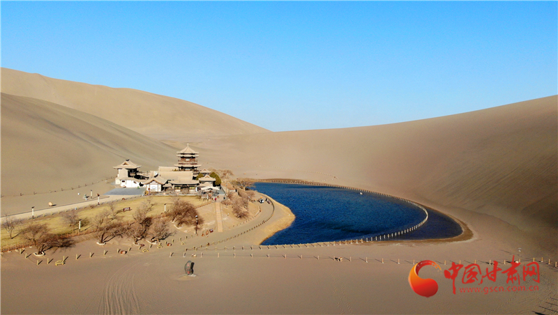 這是3月17日拍攝的甘肅省敦煌市鳴沙山月牙泉景區(qū)(無人機(jī)照片)。