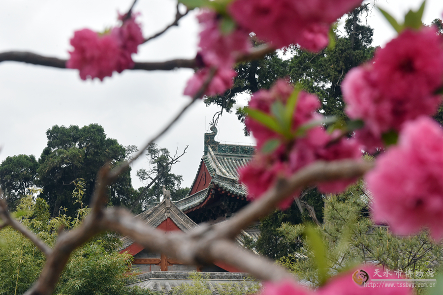 伏羲廟內(nèi)的牡丹主要分布在大門東側(cè)的樂善院、先天殿西側(cè)的來鶴軒旁,桃花和繡球花主要生長在后院。這里冬天有臘梅花、結(jié)香花,春天有牡丹花、桃花,夏天有荷花等。四季花香、全年常青,讓伏羲廟景區(qū)的古建與園林花卉相得益彰,美輪美奐。
