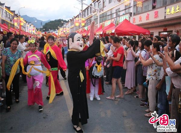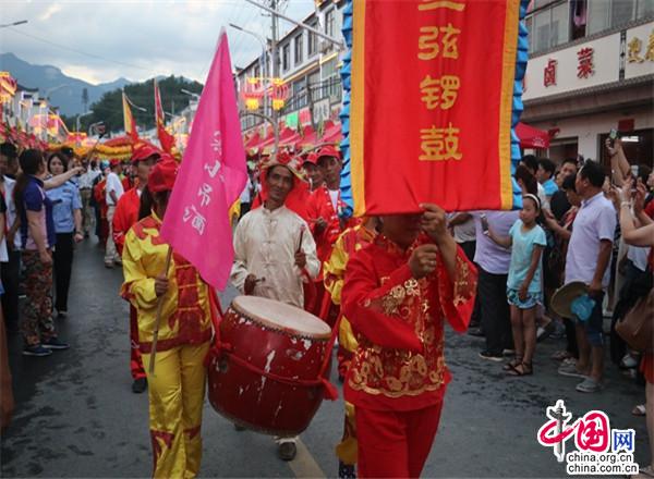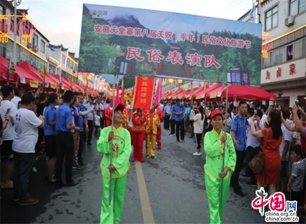 小鎮(zhèn)很熱鬧。小鎮(zhèn)現(xiàn)已入駐了十幾家大型連鎖超市,500多家賓館飯店,300多家購(gòu)物店。每到雙休日,操著各色口音的四海賓客在街上蹓跶、徜徉,或在超市購(gòu)物店里選購(gòu)精美的土特產(chǎn),或在酒店里品嘗著山珍野味,或在KTV里痛快豪嗓,或圍著篝火歡歌勁舞,有的干脆就光著膀子在露天的小吊鍋前劃拳行令,恣意灑脫,好不愜意。每年農(nóng)歷六月初六,天堂寨都要舉辦隆重的天貺節(jié),天堂寨鎮(zhèn)政府門(mén)前的一公里主街道兩邊擺起了長(zhǎng)龍似的紅色帳篷,“百家吊鍋宴”成為中外游客免費(fèi)品嘗天堂寨美食的饕餮盛宴。人們一邊喝著小吊美酒,吃著山珍美味,一邊欣賞著穿街而過(guò)的威風(fēng)鑼鼓、騰龍舞獅、儺戲花船、獨(dú)輪推美女、花棍打癡郎等不斷推陳出新的民俗風(fēng)情表演。酒足飯飽之后,再到政府廣場(chǎng)觀看精彩紛呈的文藝節(jié)目。一時(shí)間,人山人海,把一個(gè)千米“長(zhǎng)街”擠得水泄不通;歡聲笑語(yǔ),把一個(gè)深山小鎮(zhèn)匯成了歡樂(lè)的海洋……