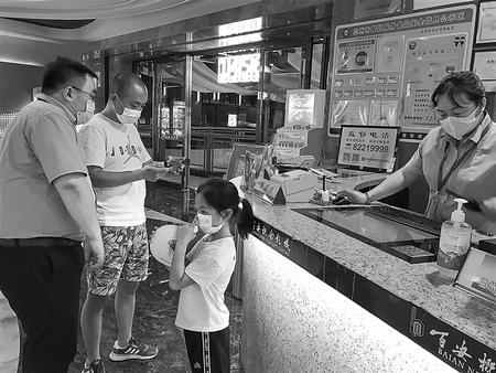隨后,記者前往蘭州百安概念影城。影城入口處,工作人員提醒觀眾戴好口罩,對進(jìn)入影院的每個觀眾進(jìn)行體溫檢測和信息登記,未戴口罩和體溫在37.3℃以上者不得進(jìn)入。