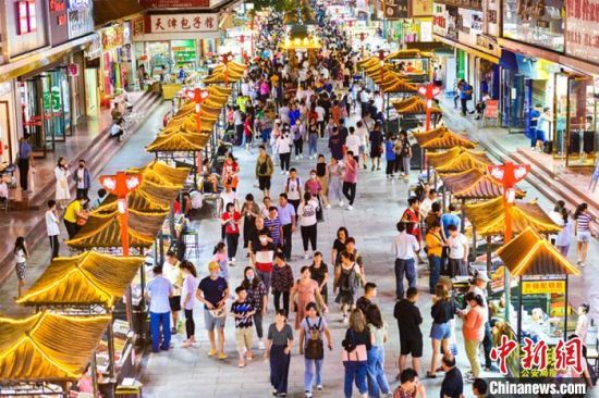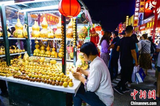 7月29日,游客在敦煌旅游工藝品一條街上漫步,體驗濃郁的民俗風情和敦煌文化。 王斌銀 攝