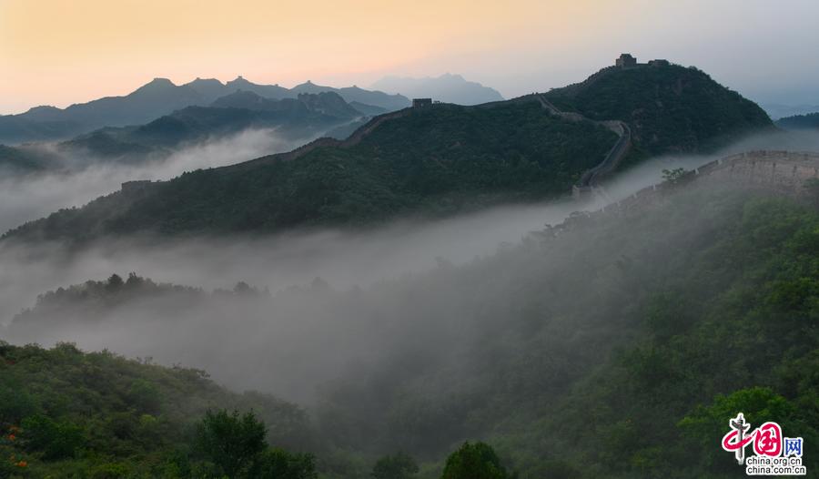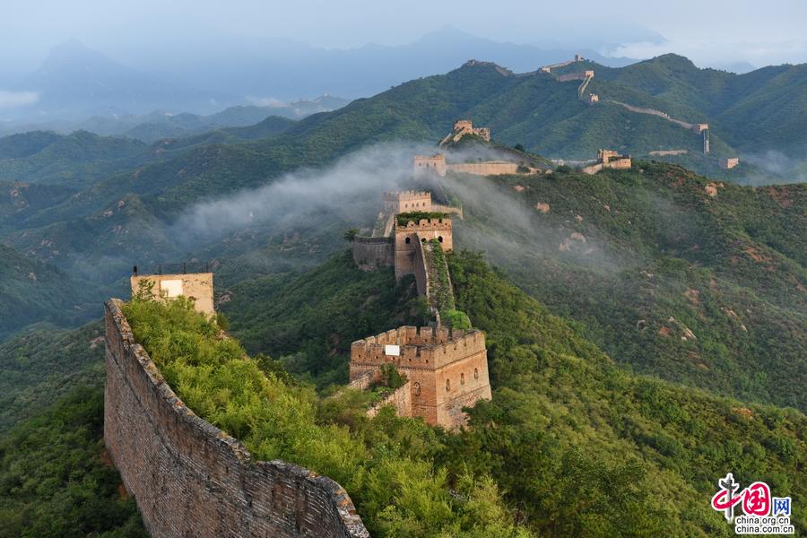 進(jìn)入夏季,金山嶺長城出現(xiàn)云霧天氣多達(dá)二十多次,美輪美奐,令人神往。