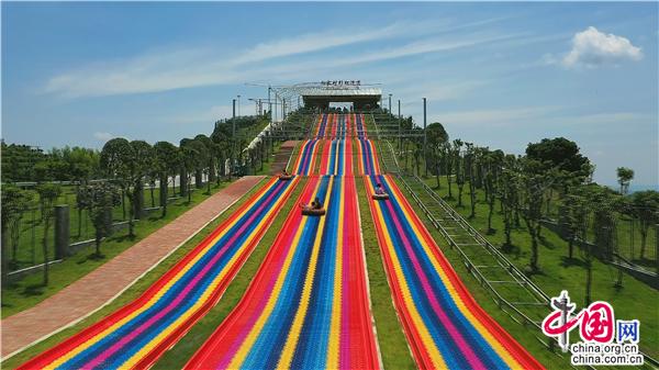 來到向家村,坐環(huán)山小火車是觀光賞景的絕佳選擇,坐上舒適的座椅,小火車便平穩(wěn)地啟動(dòng)了。“前方左邊山頭就是向家村板栗園右邊則是風(fēng)光旎麗的月亮湖。”面帶微笑的導(dǎo)游向游客們介紹。一座郁郁蔥蔥的山丘,在明媚的陽光下顯得分外美麗。一陣水汽襲來,打造精美的水上樂園映入眼簾。樂園里設(shè)施齊全,既有水深0.6米的潛艇,又有0.8米高的冰山雪熊,一群小朋友在家人的陪伴下盡情戲水游樂。峰回路轉(zhuǎn),一道靚麗的“彩虹”赫然橫在路旁,這是一條長度為150米的彩虹滑道,是邵陽市目前長度最長、寬度最寬、坡度最大、游玩最刺激的一條滑道,極受小朋友喜愛和年輕人的熱捧。還有露營基地、青少年拓展中心、垂釣中心成為“驢友”的天堂。一位來這露營的朋友感嘆道:“這是一片神奇的土地,這是充滿誘惑和野趣的地方,在這里可以感悟到生命的自然和諧;通過爬山,我找回了許多久違的輕松與親切。”此外,向家村還是別具韻味的休閑雅地,這里坐落著造型古樸、飛檐翹角的華儼禪寺,擁有木質(zhì)廊柱、藤蔓茶幾、布料沙發(fā)的浪漫小屋,丹桂飄香的金玉滿堂的桂花園……真是讓人流連忘返。