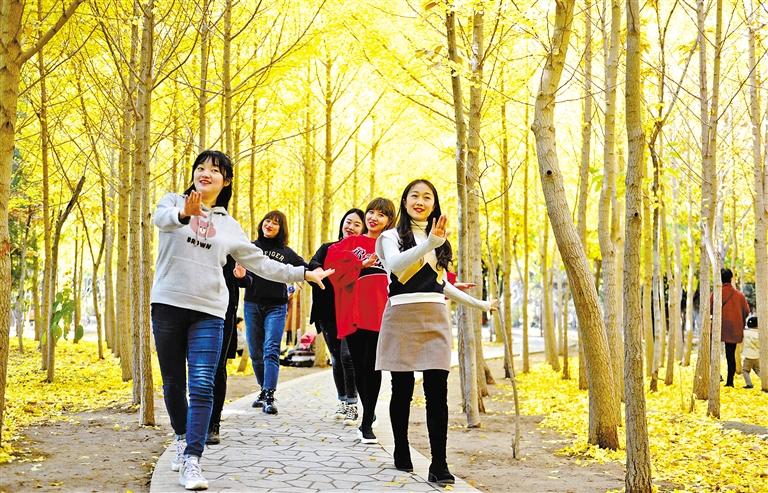 近日,蘭州植物園的銀杏樹金黃一片,吸引眾多市民前去游玩拍照。秋高氣爽,藍(lán)天白云下,蘭州植物園內(nèi)銀杏樹進(jìn)入最佳觀賞期,猶如披上了“黃金甲”,讓魅力無窮的植物園又添新景,金黃色的銀杏樹在陽光的照射下令人陶醉,成為深秋一道迷人的風(fēng)景。