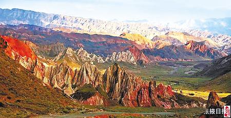木星谷位于肅南縣大河鄉(xiāng)紅灣村境內(nèi),占地面積十多平方公里,地勢(shì)開(kāi)闊遼遠(yuǎn),地貌景觀豐富多彩,既有以色取勝的五彩迎賓山,又有以型取勝的神奇萬(wàn)佛山、七彩飄帶峽、萬(wàn)卷天書(shū)峽、巨型轉(zhuǎn)經(jīng)輪等絕世奇觀,是真正意義上的地貌大觀園。上述景觀稀缺孤傲,磅礴大氣,以特有的稟賦傲立于世,帶給人強(qiáng)烈的震撼。