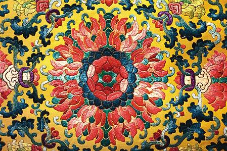 明黃江綢彩繡云蝠紋座具(局部) 沈陽(yáng)故宮博物院藏