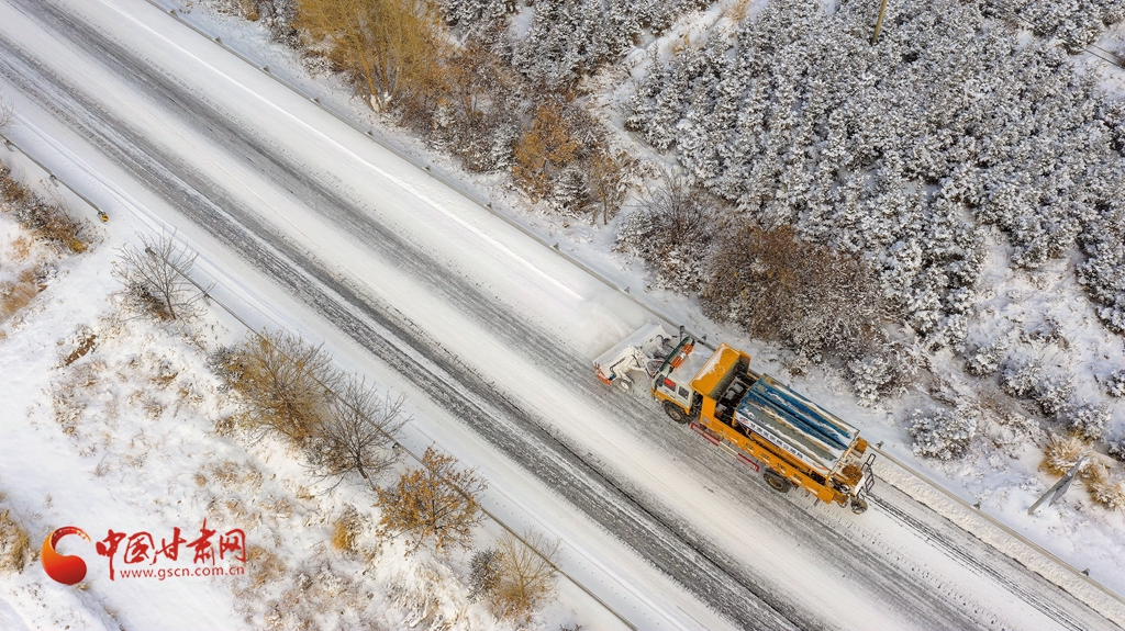 12月12日,甘肅省張掖公路局除雪車輛在國道227線進行除雪作業(yè)。