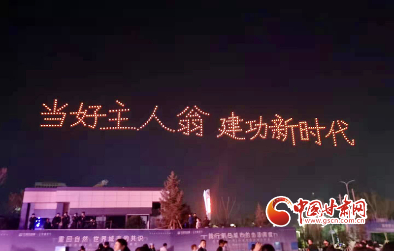 活動現(xiàn)場,千架無人機編隊以天空為幕,以“熒光”為筆,在金城上空分別繪就“慶祝中國共產(chǎn)黨成立100周年”“蘭州鐵橋”“奧體中心”等數(shù)幅壯美畫面,集中反映近年來蘭州市在經(jīng)濟(jì)社會領(lǐng)域取得的成就。