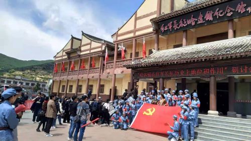 全國百名藝術(shù)學(xué)校校長“頌紅星、憶長征、祭先烈”重走長征路研學(xué)教育活動在哈達(dá)鋪舉行。