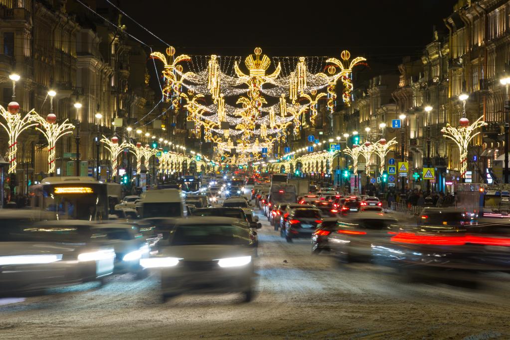 新年即將到來,俄羅斯圣彼得堡街頭點亮各色燈飾,營造節(jié)日氣氛。