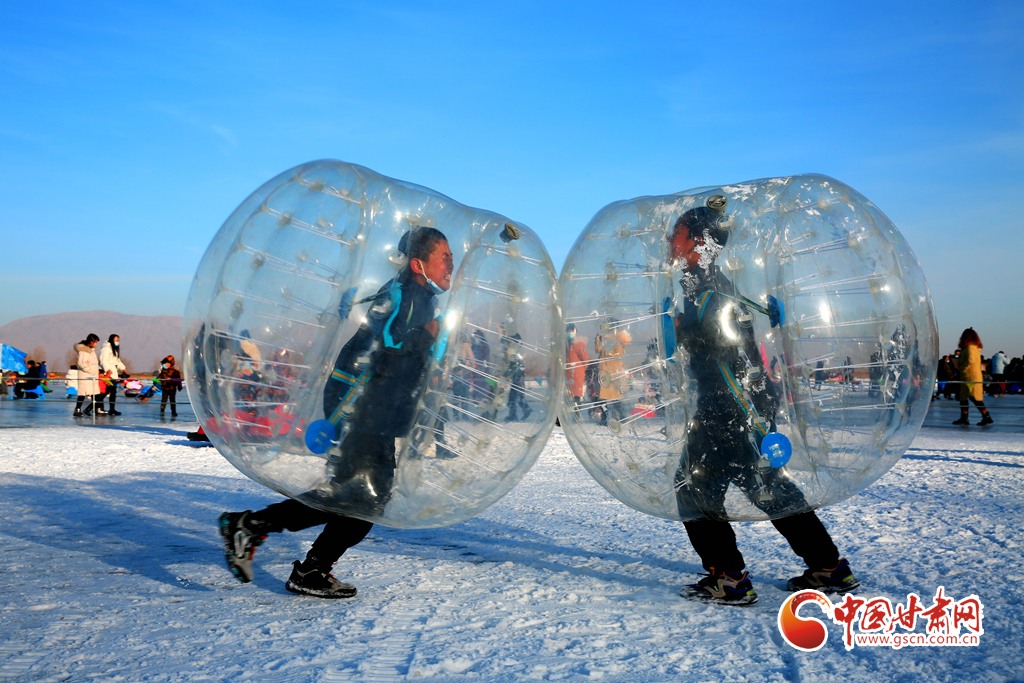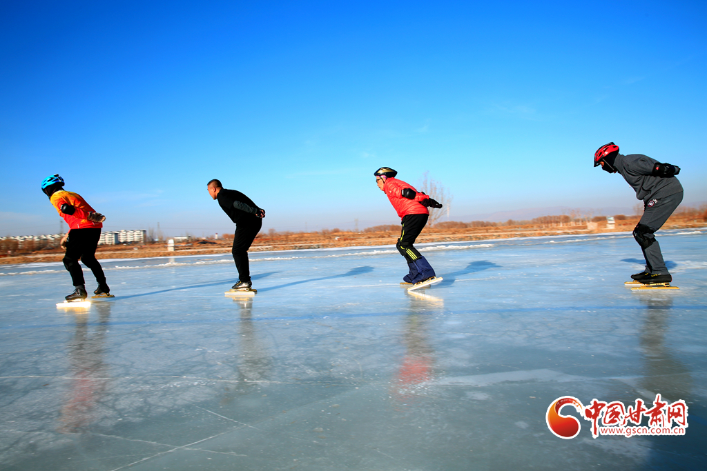 1月2日,眾多冰雪運動愛好者齊聚甘肅省張掖國家濕地公園西口滑冰場,體驗雪上運動樂趣,為冬奧會助力加油。