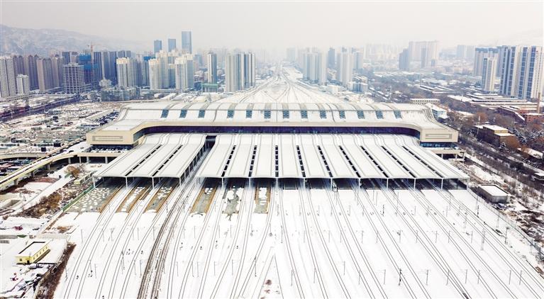 2月6日,在蘭州西站,鐵路線路隱沒(méi)在白雪之中。記者 馬軍 攝