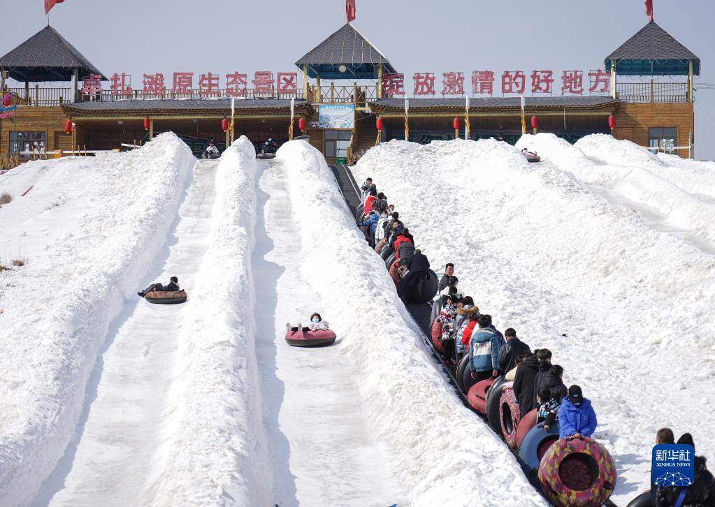 連日來(lái),青海省互助土族自治縣威遠(yuǎn)鎮(zhèn)的卓扎灘原生態(tài)景區(qū)吸引眾多游客前來(lái)體驗(yàn)冰雪項(xiàng)目的樂(lè)趣。
