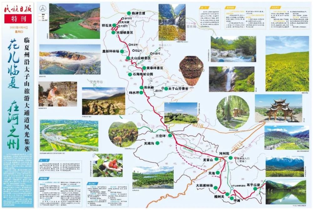 太子山沿線是臨夏自然風光、人文景觀的集萃地。近年來,州委州政府在打造臨夏文旅百億產業(yè)時,創(chuàng)新性地打造出“沿太子山旅游大通道”黃金線路。該線路全長286公里,南起蓮花山、北至大河家,涵蓋沿線康樂、和政、臨夏、積石山4縣的28 個鄉(xiāng)鎮(zhèn)、4個國有林場,已成為一條環(huán)臨夏州旅游公路網線。