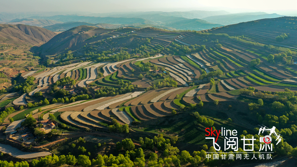 初夏時節(jié),一場雨后的定西市安定區(qū)石泉鄉(xiāng)3000畝標(biāo)準(zhǔn)化農(nóng)田和5萬畝設(shè)施梯田,青山環(huán)抱、線條分明,鄉(xiāng)村點綴其間,在不同的光線下呈現(xiàn)出不同色彩,美如畫卷。