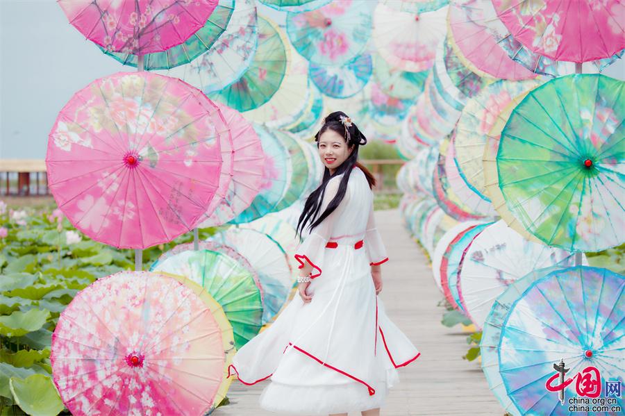 寧夏沙湖: 接天蓮葉無窮碧 國風(fēng)漢服映荷塘(圖)