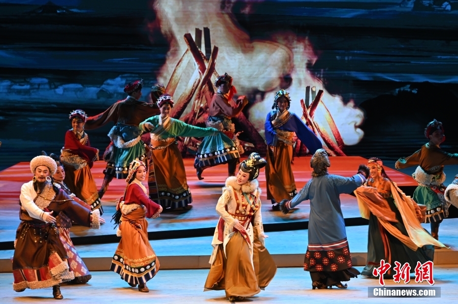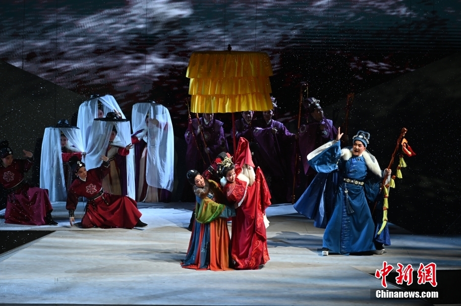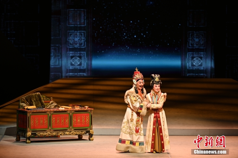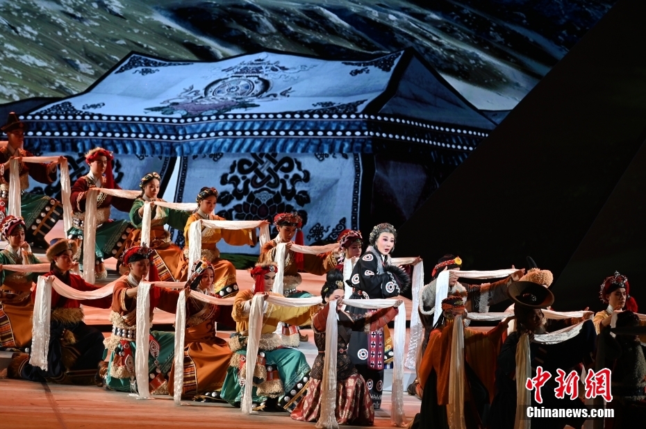 10月11日晚,大型新編歷史粵劇《文成公主》在廣東廣州大劇院首演。該劇以文成公主和親進藏的歷史事件為依據創(chuàng)作,講述了文成公主堅守吐蕃四十年,促進了吐蕃經濟、文化的發(fā)展,加強了漢藏人民的友好關系。中新社記者 陳楚紅 攝