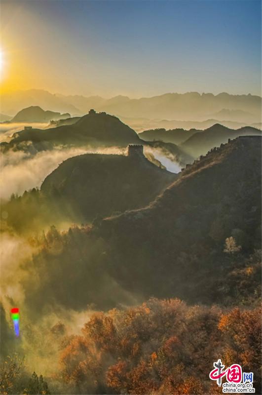 原標題:晚秋中的金山嶺長城 云海日出彩葉羨煞人
