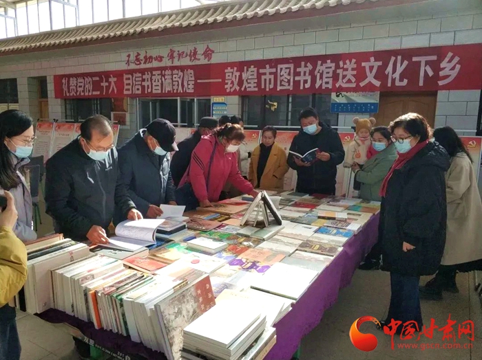中國(guó)甘肅網(wǎng)11月15日訊 (本網(wǎng)記者 張?zhí)m琴)為了深入學(xué)習(xí)宣傳貫徹黨的二十大精神,近日敦煌市圖書(shū)館組織開(kāi)展“禮贊黨的二十大,自信書(shū)香滿敦煌”送文化下鄉(xiāng)活動(dòng)受到當(dāng)?shù)厝罕姎g迎。據(jù)了解,活動(dòng)將在敦煌市各鄉(xiāng)鎮(zhèn)持續(xù)進(jìn)行,通過(guò)黨的二十大主題圖片展和敦煌精品圖書(shū)展相結(jié)合,利用文化惠民下基層的方式,向基層群眾宣傳黨的二十大精神,豐富人們的精神文化生活。