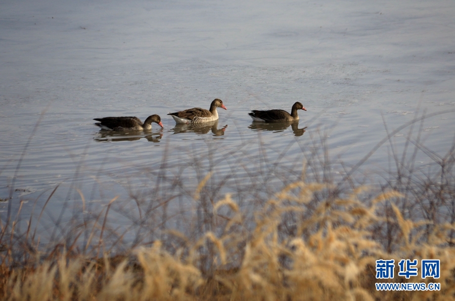 初冬時(shí)節(jié),位于鳴沙山下的甘肅省敦煌市黨河濕地,白鷺、綠頭鴨、赤麻鴨、灰雁等候鳥在這里棲息、飛翔、覓食,構(gòu)成了一幅和諧美麗的生態(tài)畫卷。